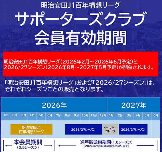 会員期間が明治安田J1百年構想リーグ(2026年1月~2026年6月)に!