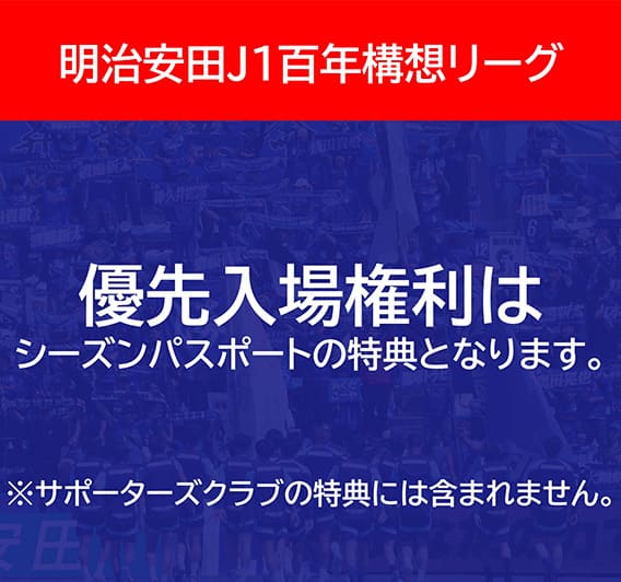 明治安田J1百年構想リーグでは会員数増が見込まれるため、会員特典より優先入場権利を廃止します。