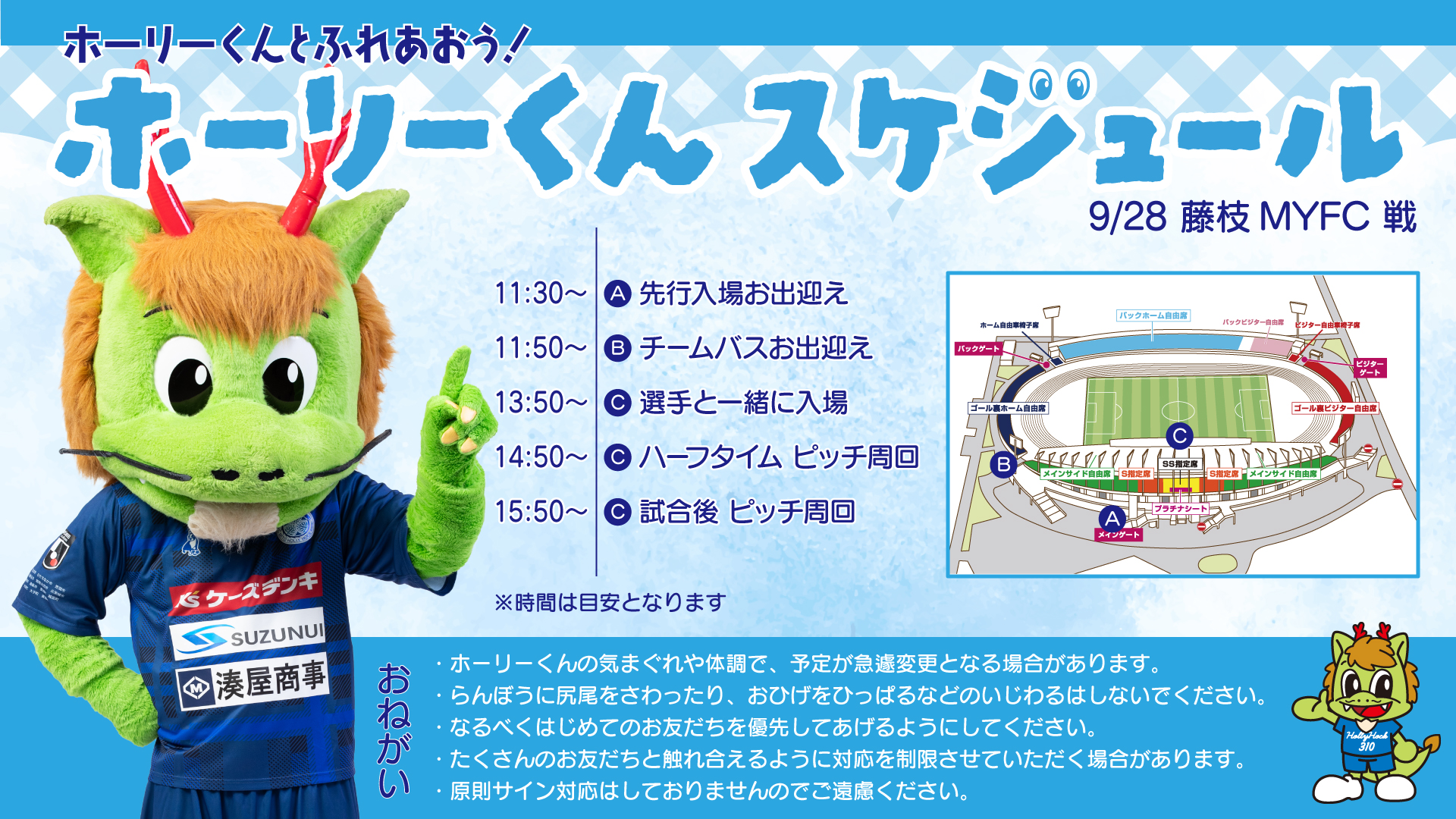 「15市町村ホームタウンPR大使」「ホームタウンホーリーくん」といった、クラブが街に根付き、街が盛り上がる、街を盛り上げる活動にも注力し、地方クラブであるからこそ地域課題や企業課題にも向き合い、トップチーム・アカデミー・フロントが一体となって地域に還元して参ります。