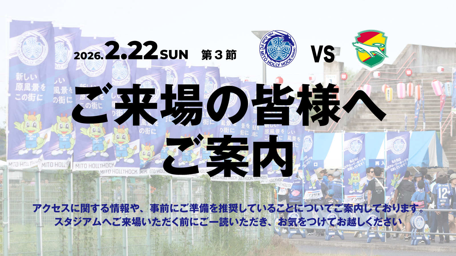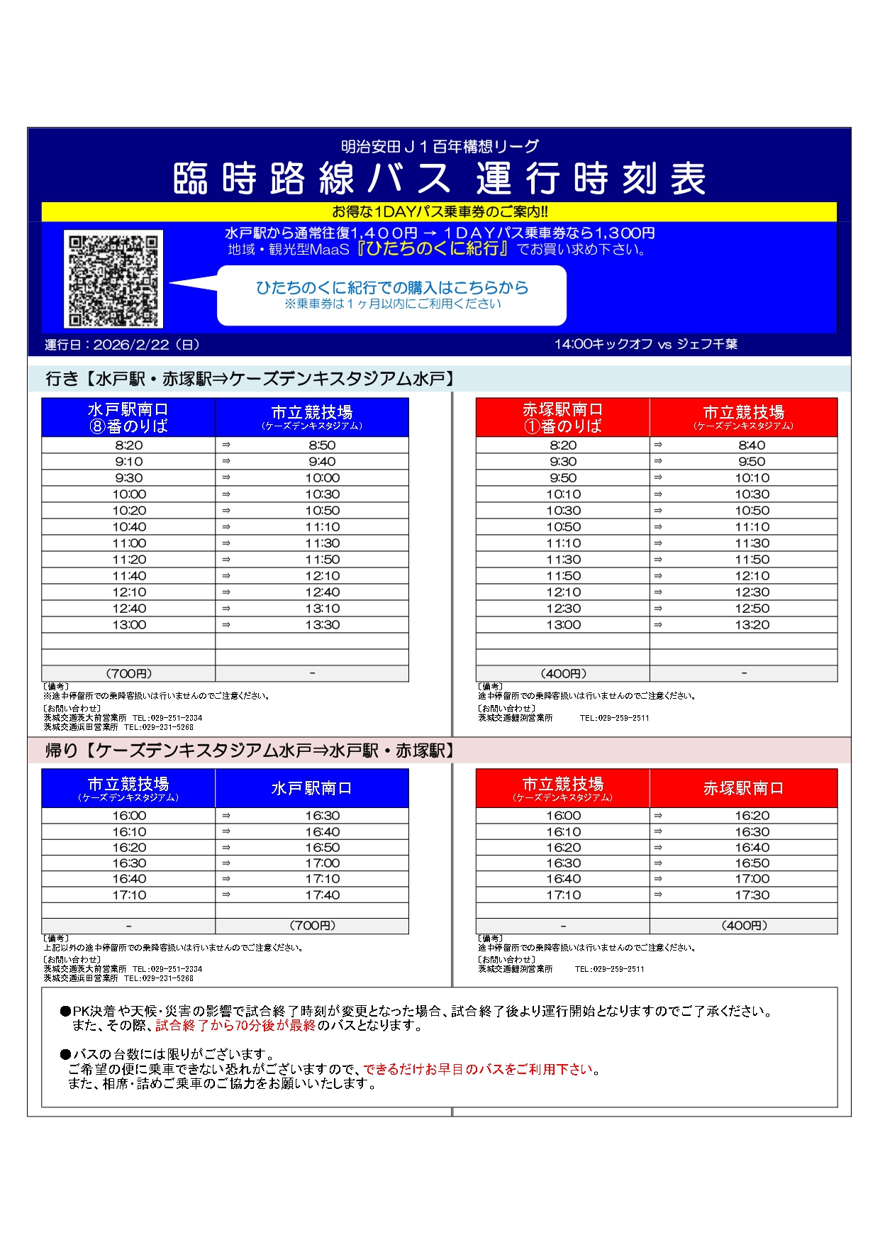 ホームゲーム開催日:水戸駅南口8番乗り場、赤塚駅南口1番乗り場より茨城交通バスの路線バス増発がございます。