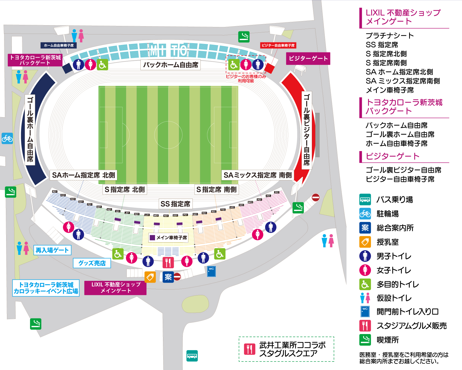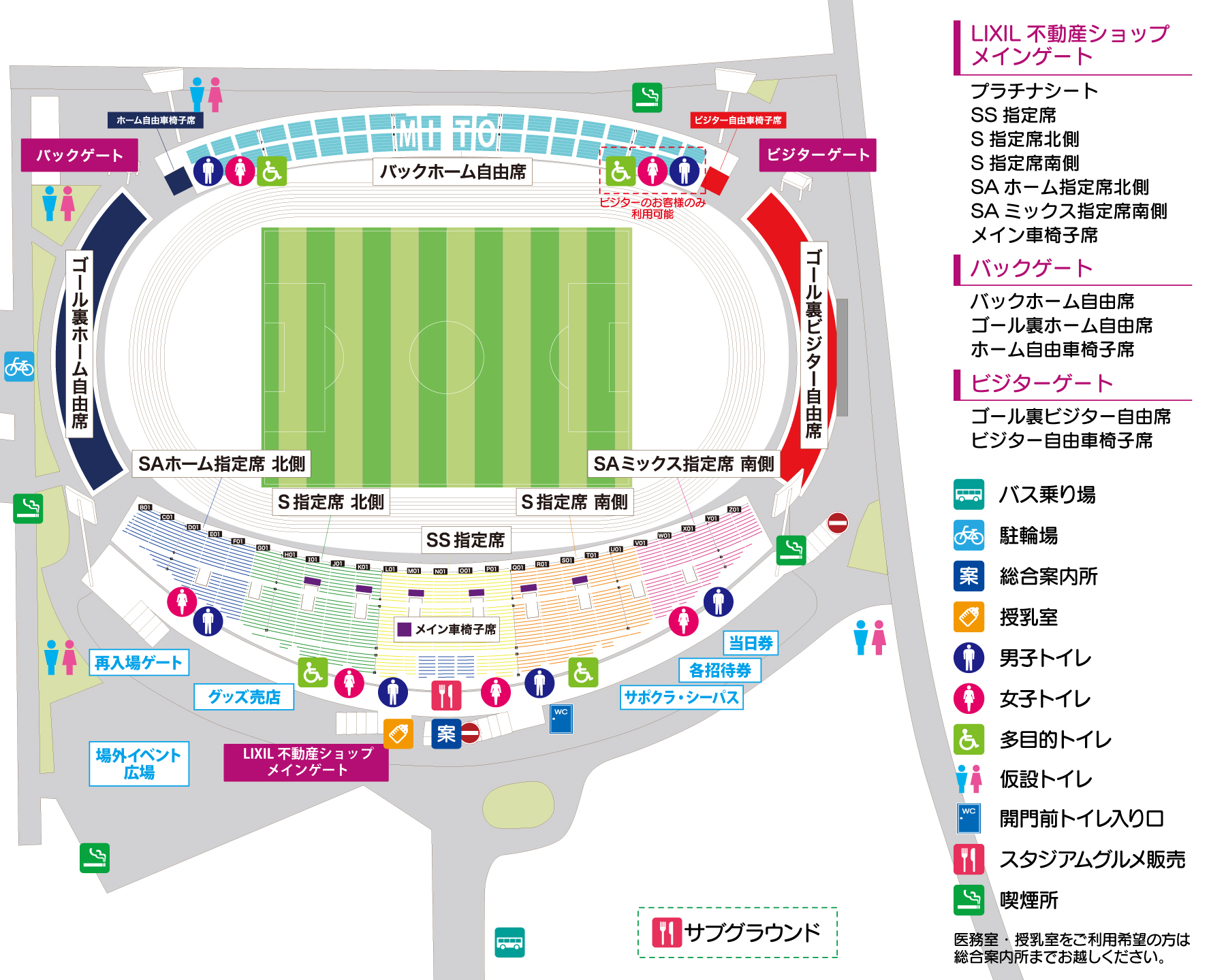 (ビジター応援可能エリア:SAミックス指定席南側、ゴール裏ビジター自由席、ビジター自由車椅子席)