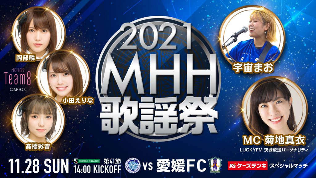 2021シーズンホーム最終戦、11月28日(日)愛媛戦にて、ミニライブイベント『2021 MHH歌謡祭』を開催することとなりましたのでお知らせいたします。シーズンホーム最終戦を、アーティストのライブイベントで華々しく盛り … 続きを読む 【11/28(日)愛媛戦】AKB48チーム8・宇宙まお登場!『2021MHH歌謡祭』開催のお知らせ