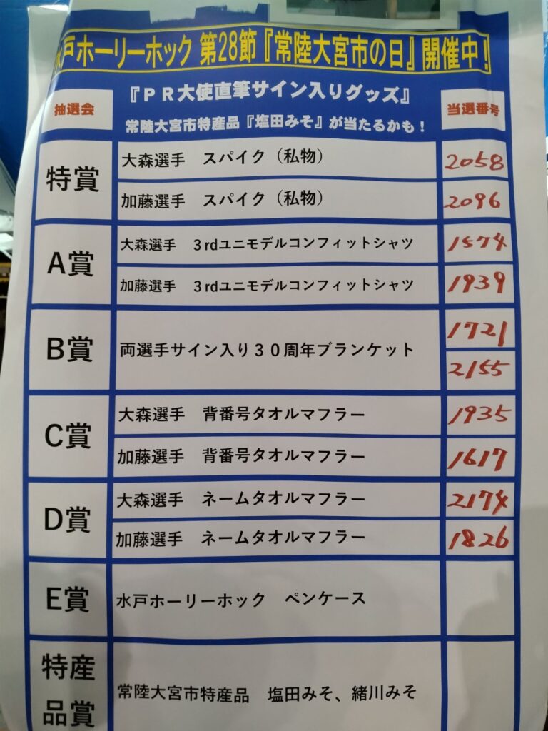 試合前半の結果から、予想的中した応募箱の中からランダムに当選を決定