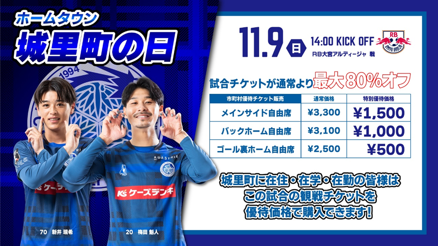 ・城里町に在住・在学・在勤の方を対象とした、11月9 日(日)RB大宮アルディージャ戦(城里町の日)の優待チケット販売会
