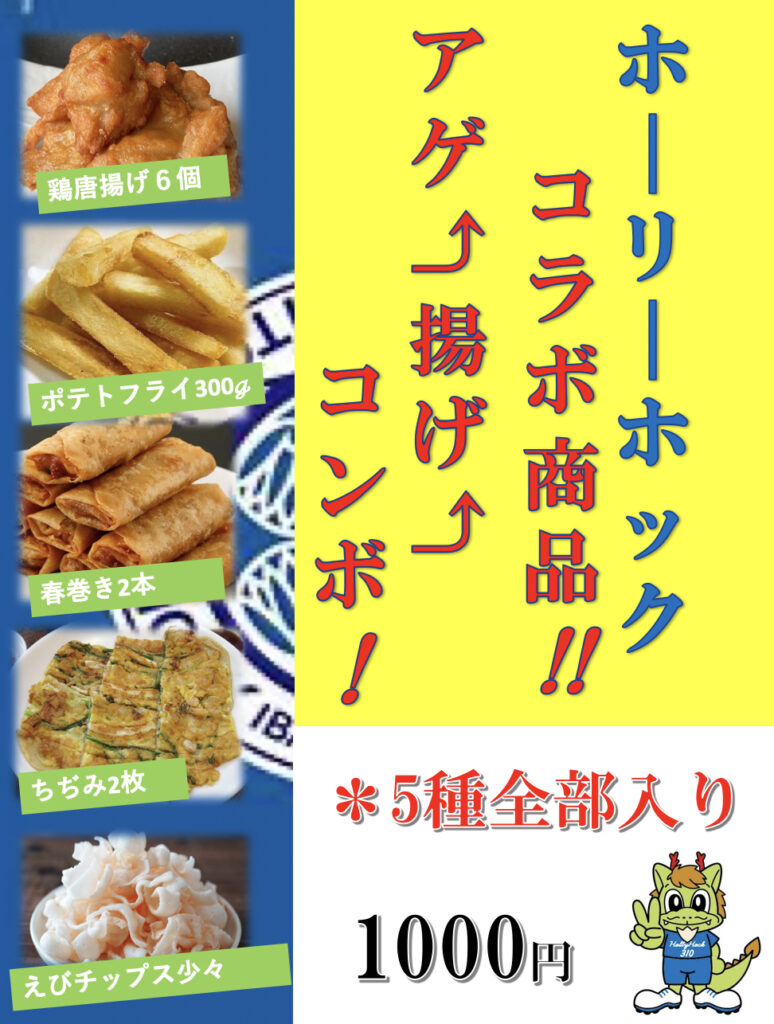アゲ揚げコンボ!(唐揚げ、ポテトフライ、春巻き、チヂミ、えびチップス):1,000円