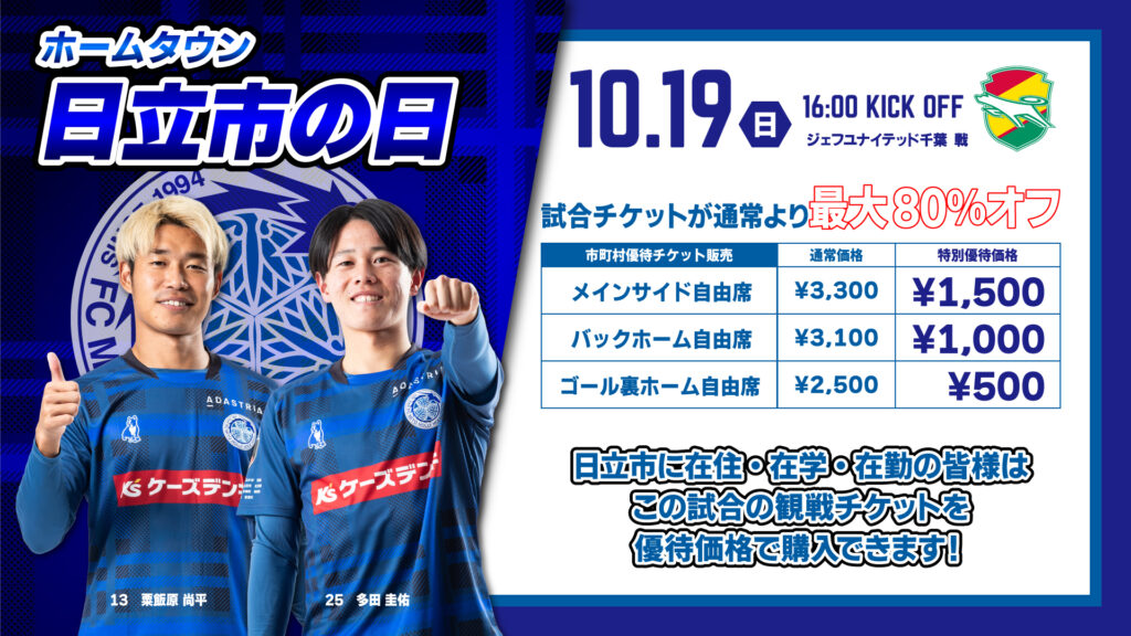 【10/19(日)千葉戦】「日立市の日」「那珂市の日」当日イベントのお知らせ