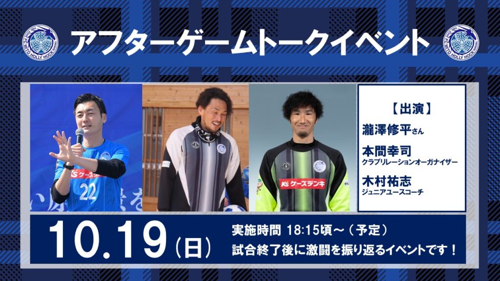 出演は、試合前もトークイベントに出演いただく瀧澤修平さん、木村祐志ジュニアユースコーチ、本間幸司CROの予定です。