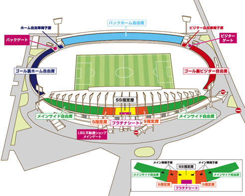 ビジターチームを応援される方は、SS指定席、S指定席、メインサイド自由席、ゴール裏ビジター自由席をお買い求めください。上記以外の席種にてビジターグッズの着用はできません。