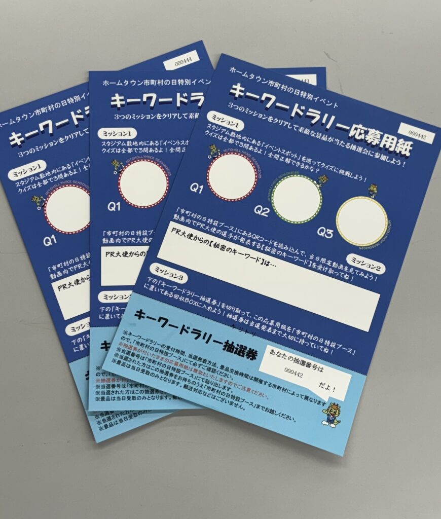※受付の際、キーワードラリー応募用紙を配付します。応募用紙をお持ちでない方は、参加対象外となりますのでご注意ください。