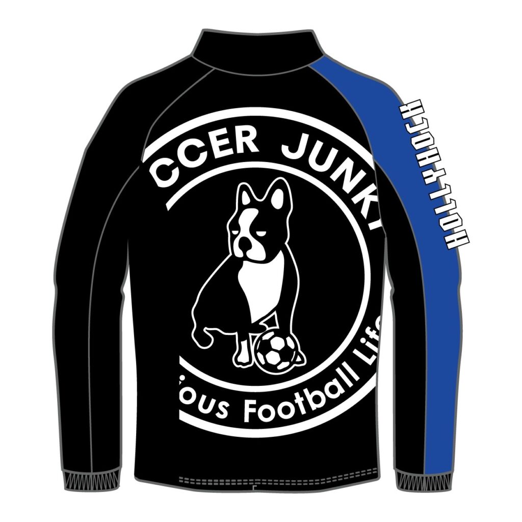ユニフォームサプライヤーである「サッカージャンキー」と水戸ホーリーホックの別注モデルのウインドブレーカーが新登場。黒ベースのボディに水戸ホーリーホックの青を差し色とし、袖には「HOLLYHOCK」、胸にクラブエンブレムを施したオリジナルデザインに仕上げました。シーズンを問わず着用できることがポイントのウェアです。