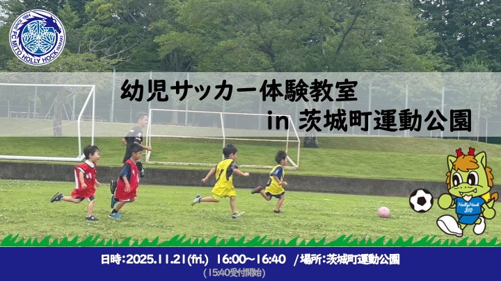 【11/21(金)】「幼児サッカー体験教室 in 茨城町運動公園」開催のお知らせ