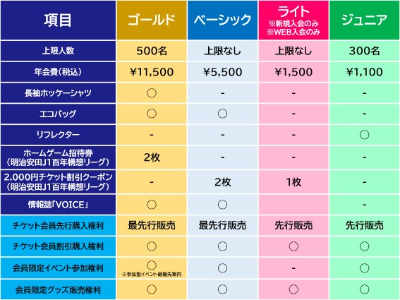 ②サポーターズクラブの会員コースが4種類になります。※2025シーズンからの継続の場合、ライト会員はご入会いただけません。