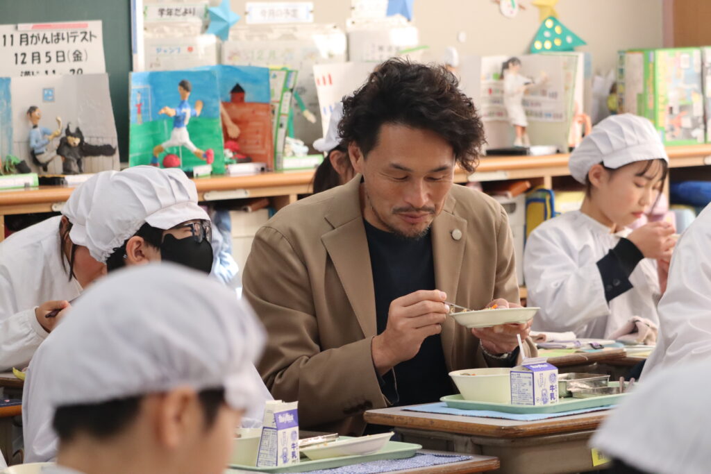 また、授業の後には6年生の皆さまに温かく迎えていただき、教室で給食を食べて交流をさせていただきました。