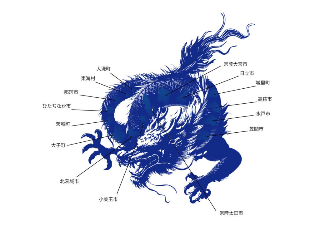龍の胴体部分にはホームタウン15市町村の地図を盛り込むことで、地域とともにクラブが飛躍していく様を表現するとともに、【ブランドプロミス】【ビジョン】の実現に向けて、これからも地域とともに挑戦を続けるクラブの精神を込めました。
