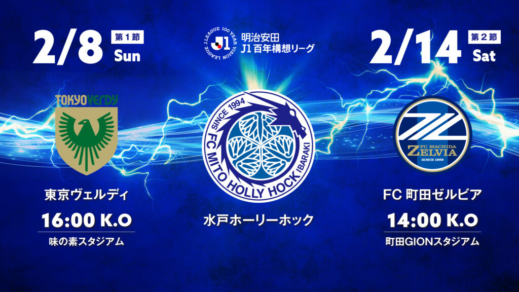 水戸ホーリーホックでは、ホームタウン笠間市にご協力いただき、明治安田J1百年構想リーグ 開幕戦である、2月8日(日)のアウェイ・東京ヴェルディ戦および第2節 2月14日(土)のアウェイ・FC町田ゼルビア戦において、ライブ中継(パブリックビューイング)を開催いたしますのでお知らせいたします。