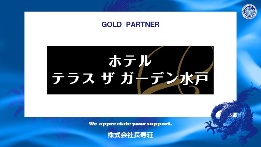 このたび、株式会社⻑寿荘は⽔⼾ホーリーホック様とのパートナー契約を更新し、本年度より「ゴールドパートナー」として新たな⼀歩を踏み出すこととなりました。創業75周年を迎え、「伝統を磨き、未来を創る」リブランディングを旗印に掲げる当社にとって、地域の誇りであるクラブをより⼒強く⽀えられることは⼤きな喜びであり、光栄の⾄りです。