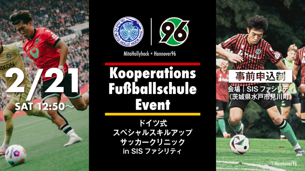 水戸ホーリーホックが育成業務提携を結ぶ、ドイツ・ブンデスリーガ2部所属 ハノーファー96のコーチが来日し、サッカー経験者向けのクリニックを開催いたします。