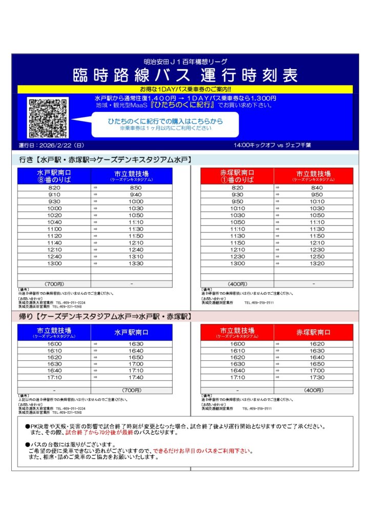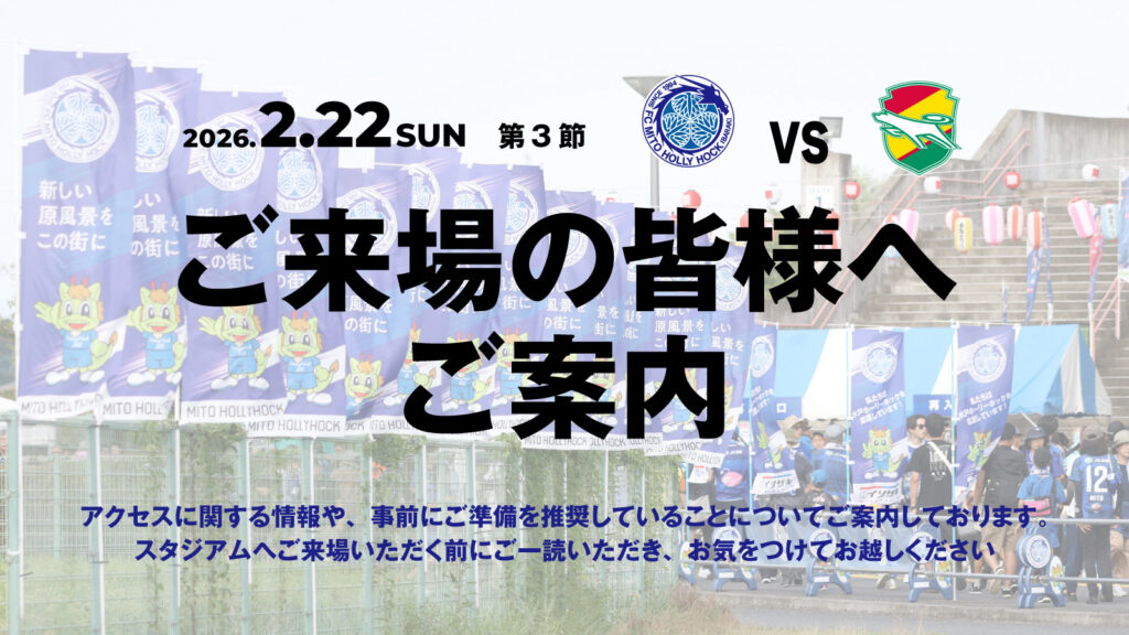 2月22日(日)に開催予定のホーム開幕戦(明治安田J1百年構想リーグ 第3節 水戸ホーリーホック vs. ジェフユナイテッド千葉)へご来場予定の皆さまへご案内いたします。