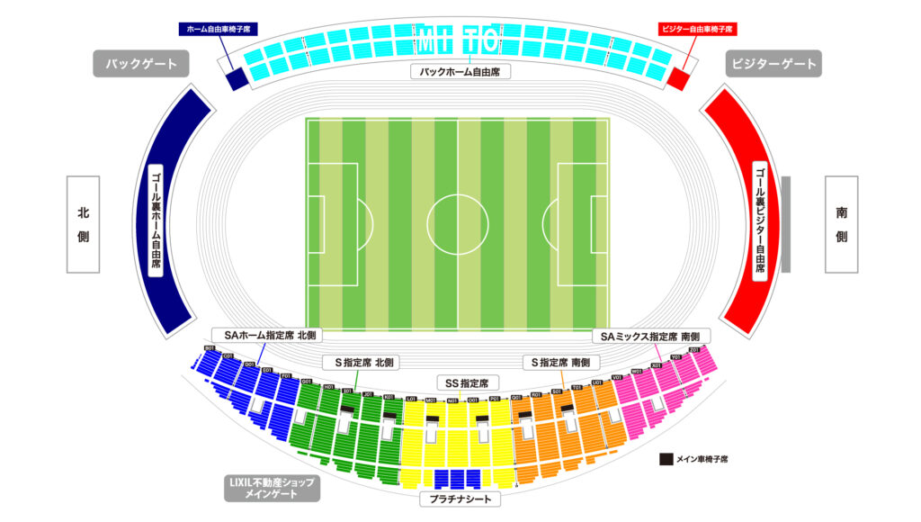 【ミックス】水戸ホーリーホックとビジターチーム、両チームのグッズを身に着けて応援ができる席種