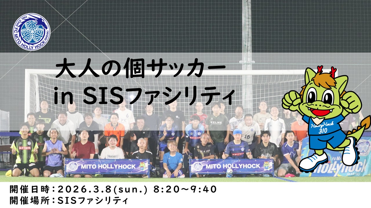 2026年3月8日(日)に、『大人の個サッカー in SISファシリティ』を開催することとなりましたので、お知らせいたします。
