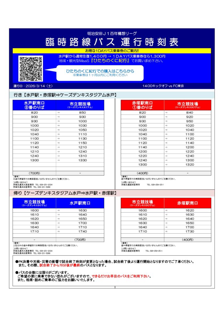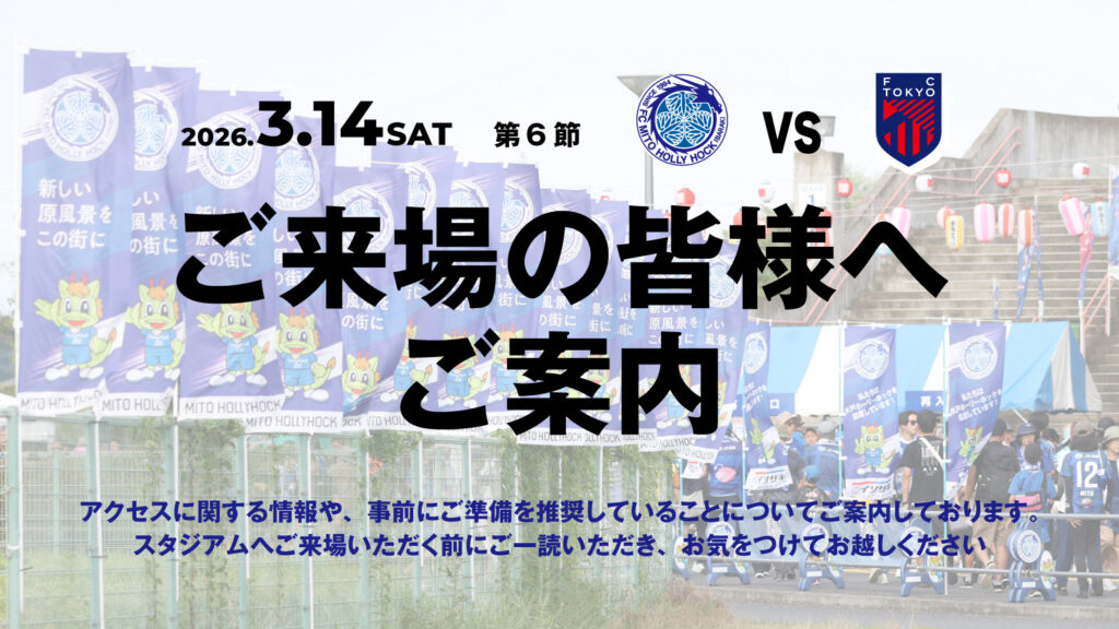 3月14日(土)に開催予定のホーム開幕戦(明治安田J1百年構想リーグ 第6節 水戸ホーリーホック vs. FC東京)へご来場予定の皆さまへご案内いたします。