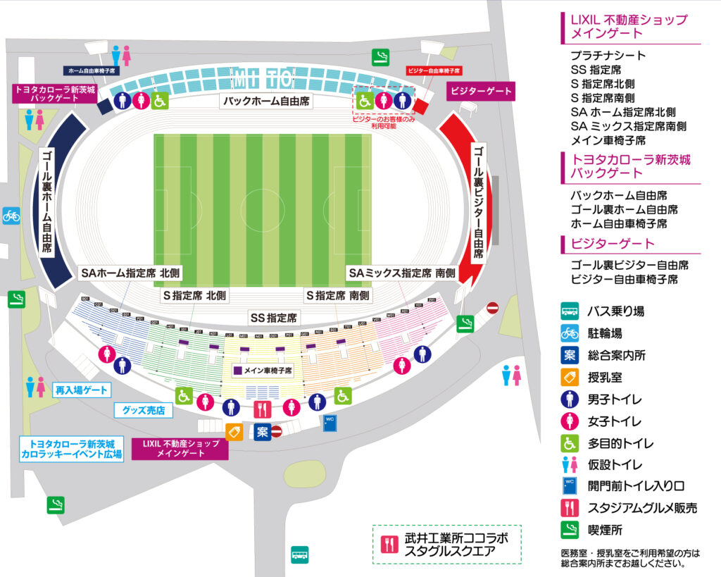 ※スタジアム開門後(スタジアム入場開始後12:45~)はスタジアム内トイレおよび場外の仮設トイレをご使用いただけます。