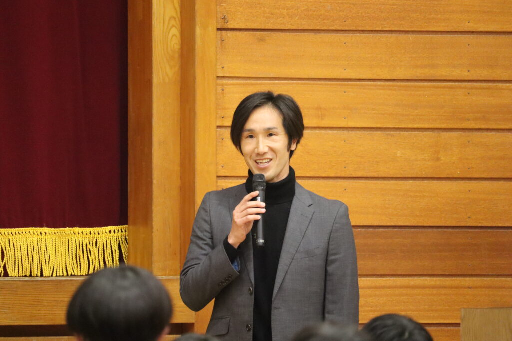 授業の中では水戸ホーリーホックで活躍した選手たちの経験から、食事と体づくりについて子どもたちに向けたメッセージを送りました。