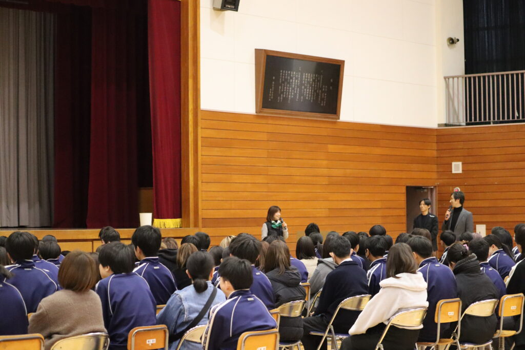 3月13日(金)、エメラルドパートナーのウルノ商事株式会社との共同企画として、地域の子どもたちに向けた食育活動を実施いたしました。当日は、小美玉市立小川南中学校の2年生と保護者を対象に、野菜ソムリエからの食育に関する授業を行い、ゲストとして水戸ホーリーホックからユースコーチ 木村祐志、ジュニアユース監督 飯田優二の2名が登場いたしました。