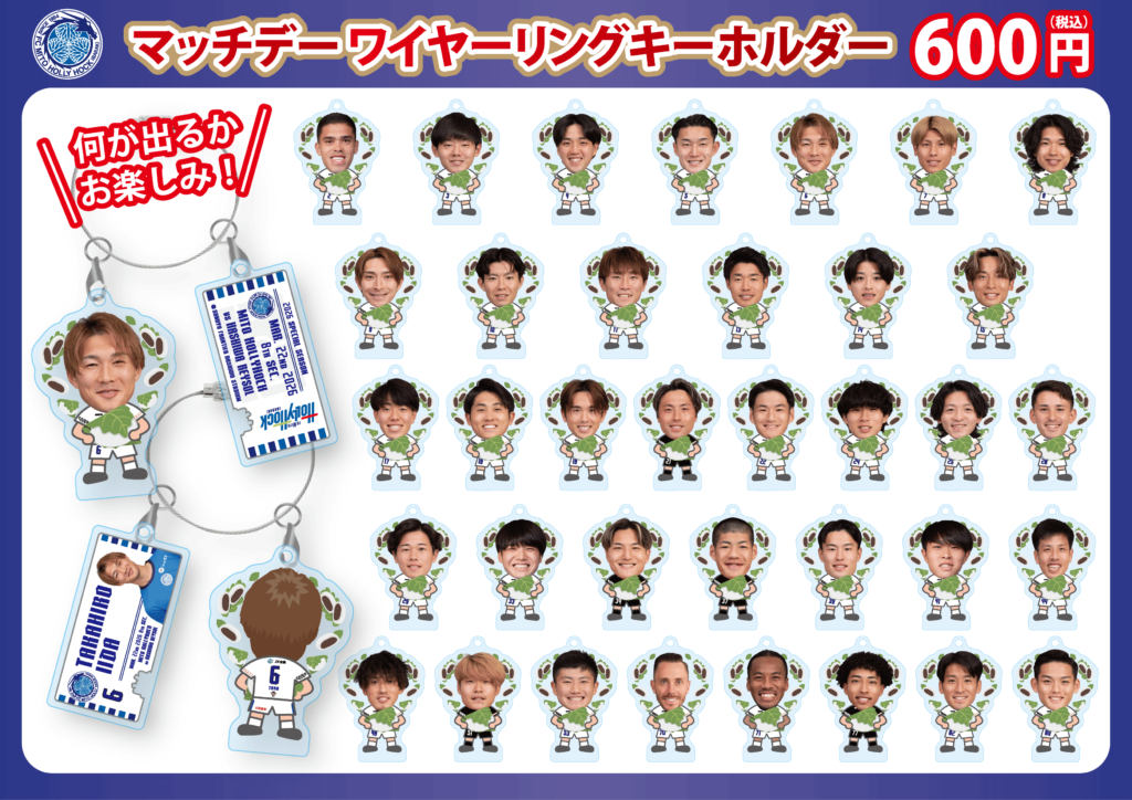 柏レイソルとの対戦ということで、水戸ホーリーホックの選手たちが“柏餅”を持っている、イラストと実写の組み合わせがかわいらしいマッチデーグッズを販売します!試合日、対戦カードが記載されたチャーム付きです。ぜひお買い求めください。
