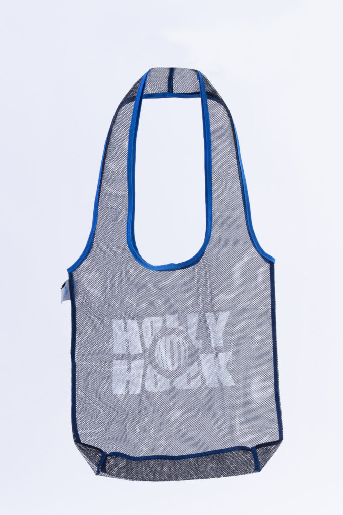 サッカーボールがゴールネットに吸い込まれシュートを決めるイメージと「MITO HOLLYHOCK」のロゴを掛け合わせデザインをプリントしたアンドエスティHD制作の特製トートバッグを、メインゲート・バックゲートにて配布いたします!