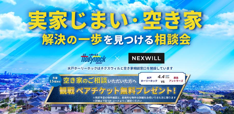空き家の社会課題に取り組み、空き家の相談窓口を開設している水戸ホーリーホックが、パートナー企業のネクスウィルと共に出張ブースで空き家相談に対応します!