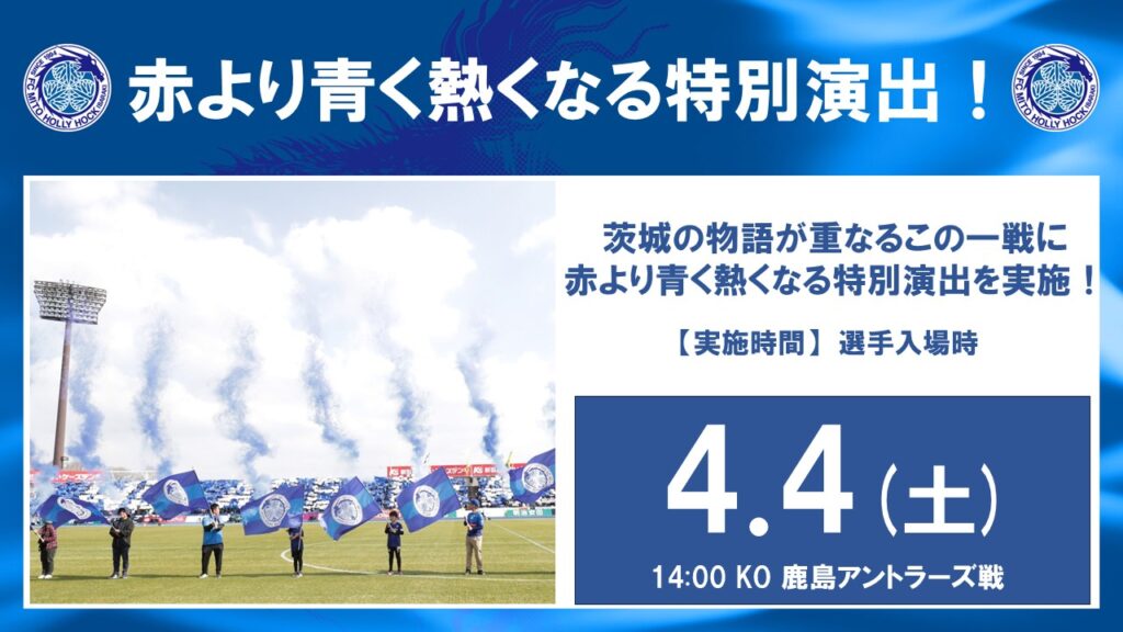 【4/4(土)鹿島戦】赤より青く熱くなる特別演出実施!
