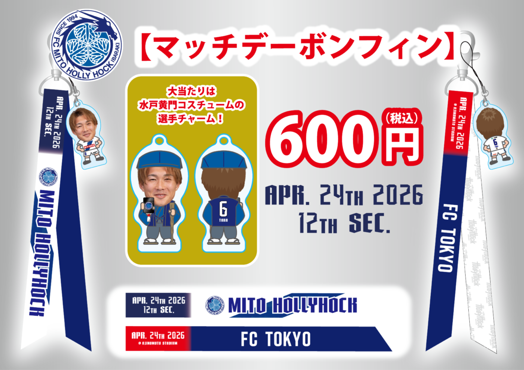 4月24日(金)味の素スタジアムで開催される明治安田J1百年構想リーグ第12節FC東京戦にて水戸ホーリーホックオフィシャルグッズの出張販売を行うことが決定いたしましたので、下記のとおりお知らせいたします。