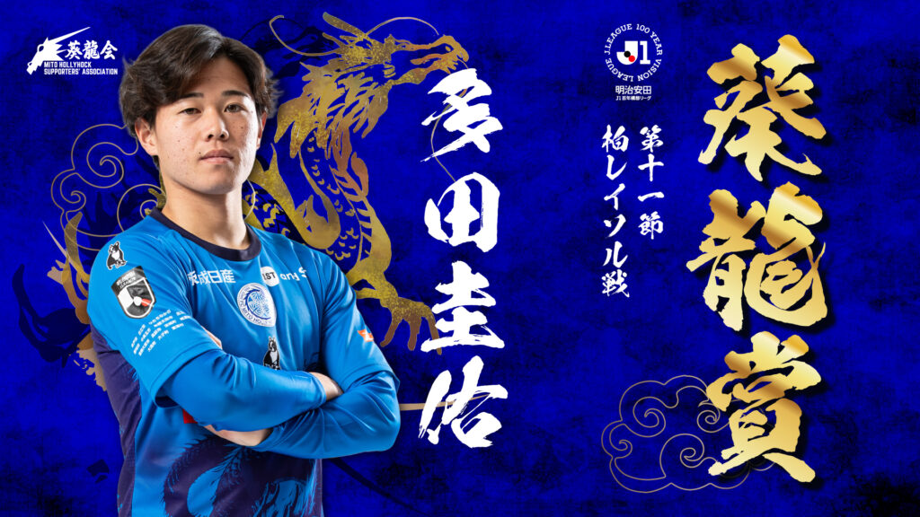 4月19日(日)ケーズデンキスタジアム水戸で開催されたホームゲーム(明治安田J1百年構想リーグ 第11節 水戸ホーリーホック vs. 柏レイソル)の勝利を記念して実施された『葵龍賞』の投票結果をお知らせします。