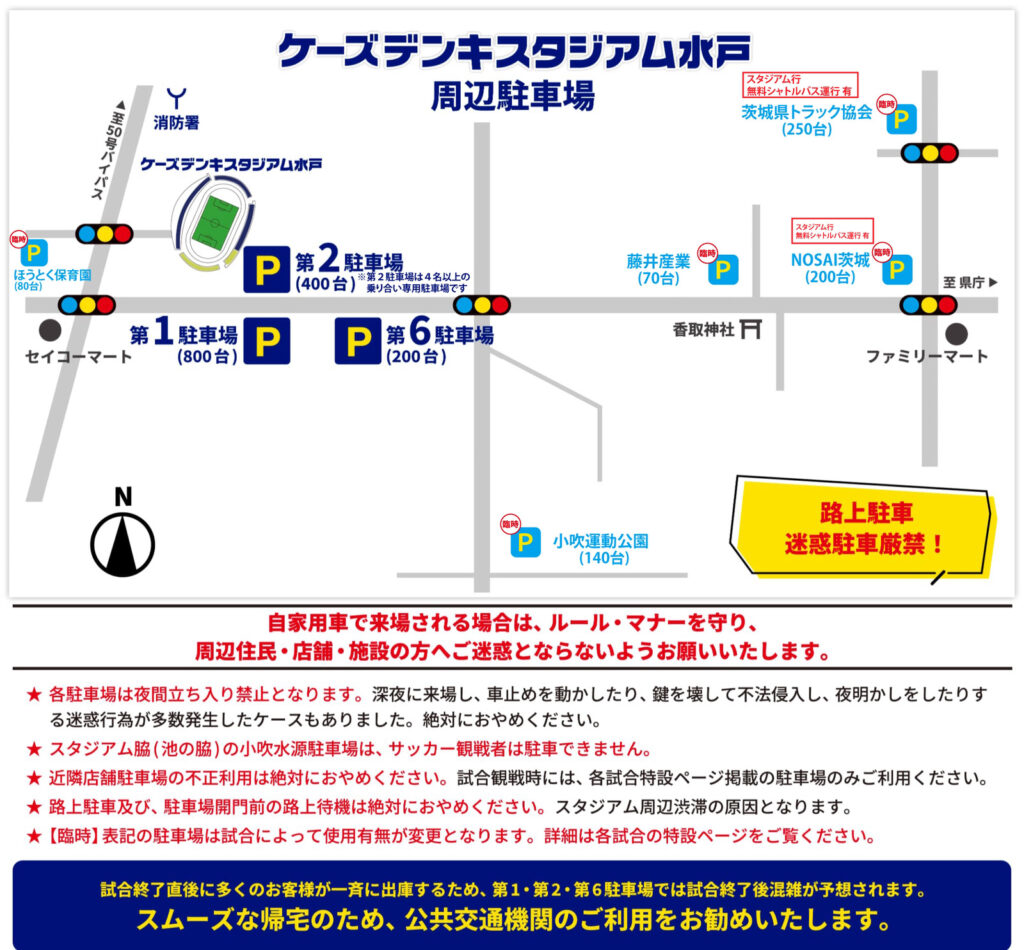 ※今節、植物公園駐車場、いばらきコープ駐車場は利用不可となります。