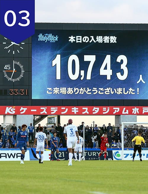 ホーム側(水戸)でサイドの攻防、コーナーキックが目の前で!