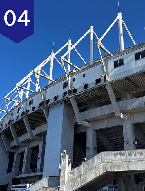 ビジター側のベンチやサブ選手のウォーミングアップエリアに近く、選手を間近で見られる特別なエリアです。