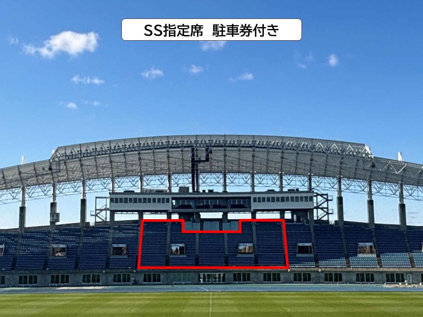 ピッチ中央で迫力あるプレーを体感でき、駐車券も付いた指定席!!