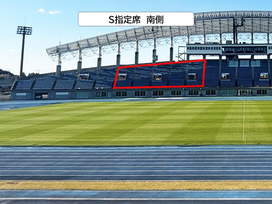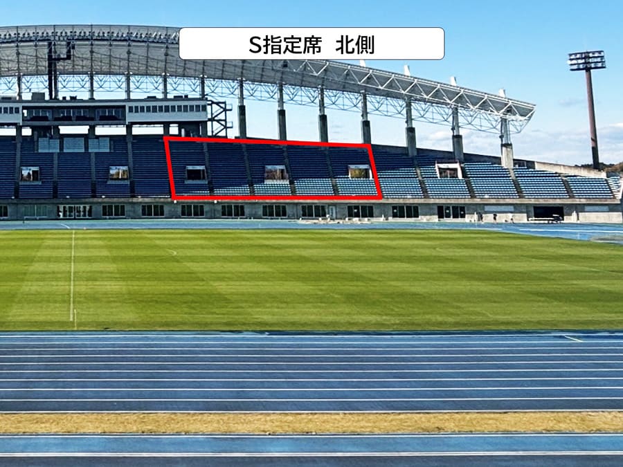 メインスタンドホーム側の指定席。 試合だけでなく、ホームチームのベンチワークやアップ中の選手なども見ることができるお手頃なシートとなります!"